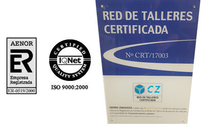 - Certificado Centro Zaragoza como taller de calidad en Chapa y Pintura